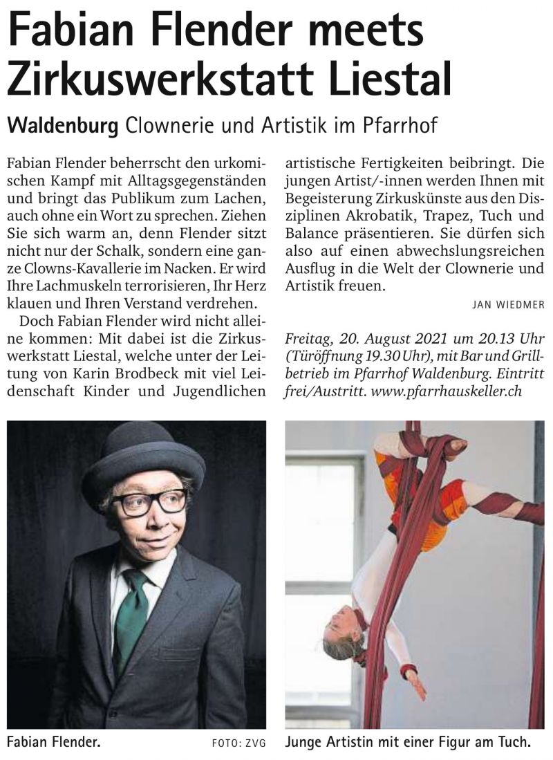 In der Ausgabe vom 12. August 2021 der Oberbaselbieter Zeitung ist ein Bericht zur Aufführung beim "Theater im Pfarrhauskeller" Waldenburg erschienen.